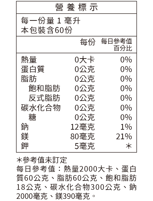 1. 本產品為高倍濃縮礦物質液,不建議直接飲用,若出現礦物質結晶屬自然現象,品質安全無虞,請安心使用。